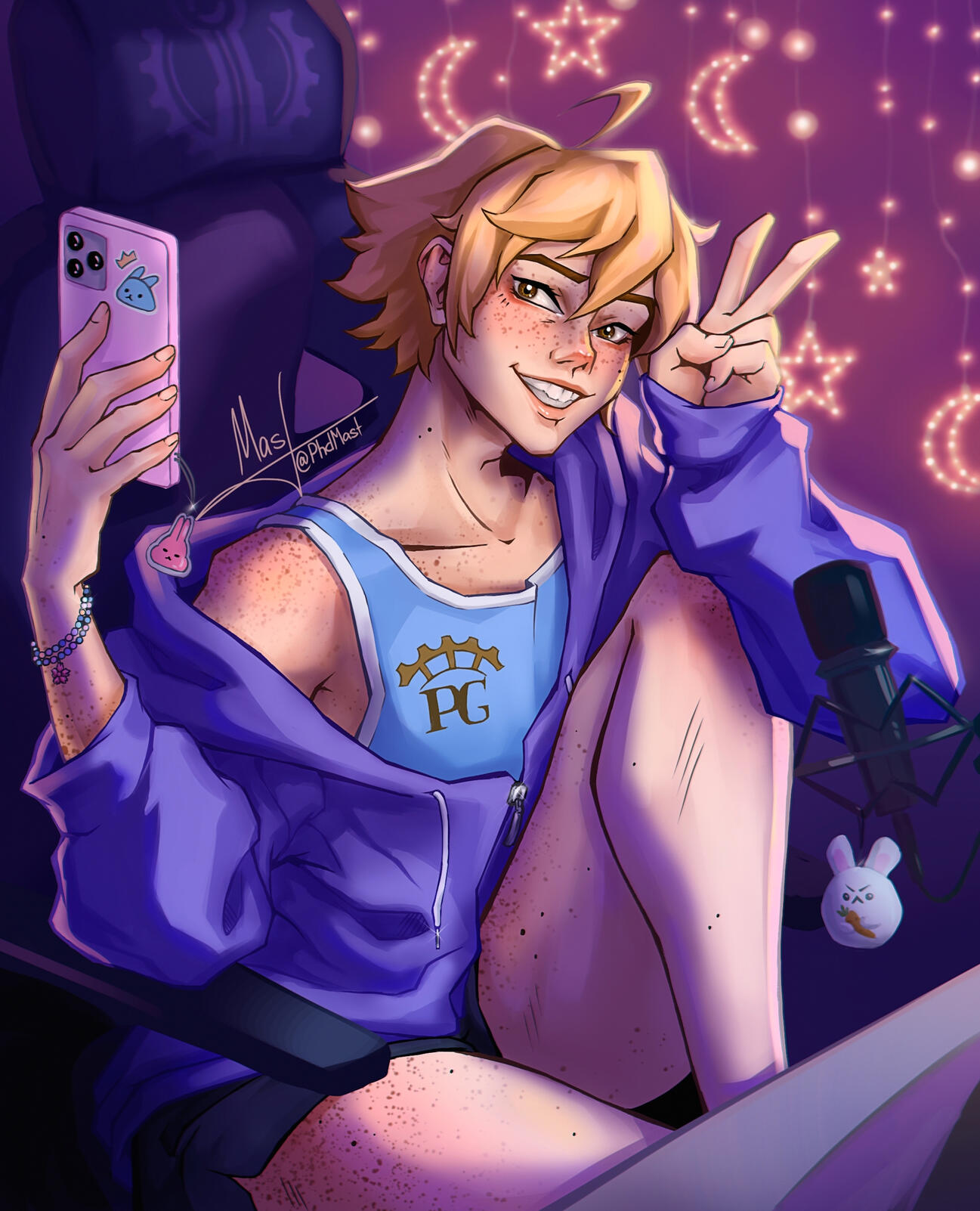 Occupation: Professional Esports player. Part-time streamer.Homeschooled and born an only child to rich and absent parents, Ezreal found comfort and escape in video games at a young age thanks to his uncle, who often played with him and gifted him new games. Having a deeper bond with his uncle than with his parents, as soon as he turned 13, he begged the man to help him set up a streaming account. After his uncle passed away not even a year later, their love of video games was all Ezreal had left. Streaming became an outlet for him to be himself and spread the love of games he shared with his uncle, and he found that through streaming his League of Legends gameplay. Naturally gifted and knowing the game like the back of his hand, he rose through the ranks despite being so young, and when he was 16, he was scouted by the coach of the Piltover Gaming E-Sports team as their star ADC. He went on to win his first Worlds championship in his debut year, and after winning the following 2 years, earned himself the title of the Golden Prince of Piltover. Since then, he accumulated 4 Worlds wins and some losses that left his confidence in shambles. Even with his successes, he struggles with his self-image and being taken seriously as an adult because of his love of bright colors, sweets, and cute animals, as well as the anxiety his parents instilled in him that he's a burden to those around him. Now with his eyes full of renewed motivation and his friends behind him, he's aiming for that 5th Worlds title.